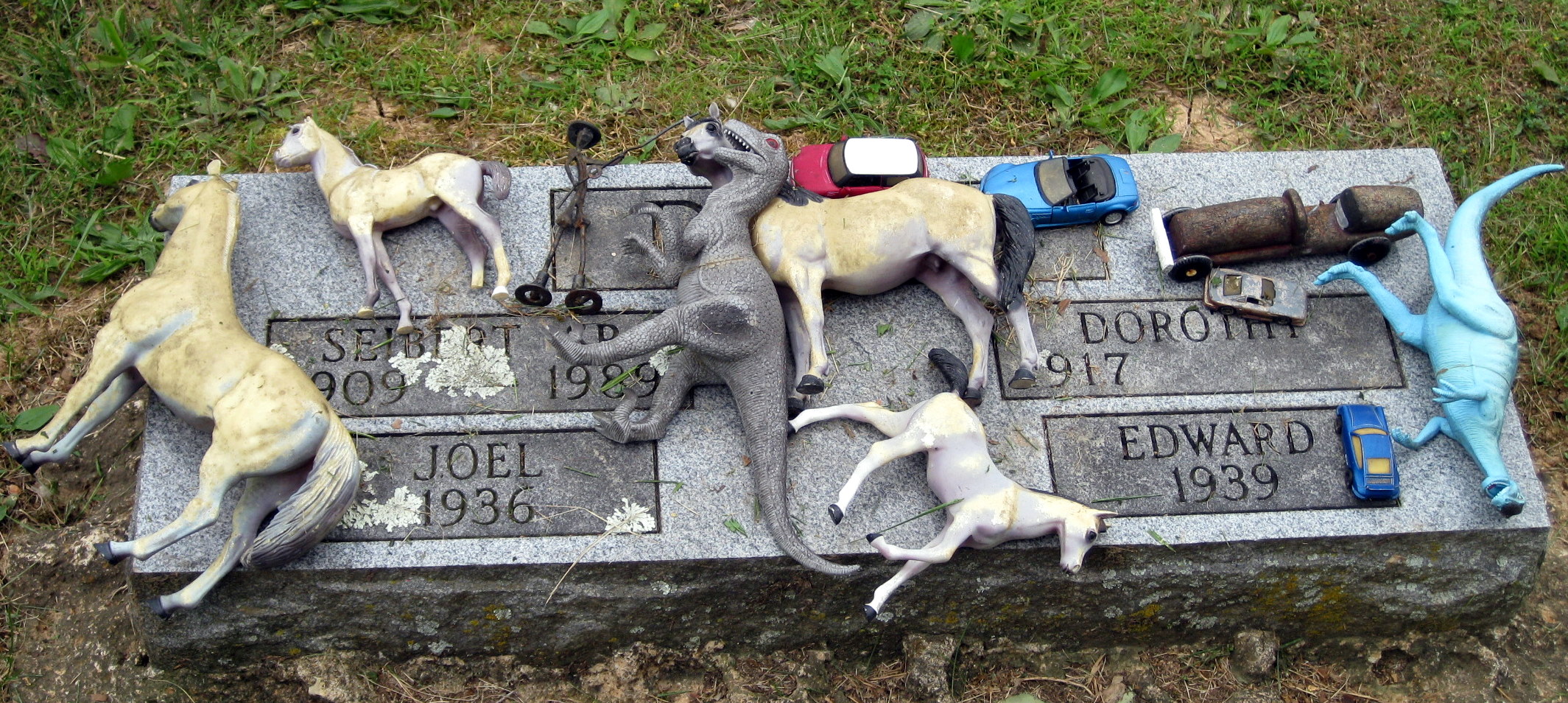 Pam’s comment to my previous post mentioned the custom of leaving small stones on a tombstone to indicate that a visit was made. I have not seen this, but I saw the arrangement above on a tombstone at Snowdenville Cemetery in eastern Madison County, Missouri, which could have been the work of a groundskeeper who picked up things ahead of the mowers, or it could have been a loving tribute.